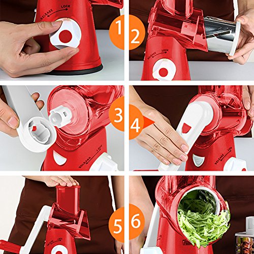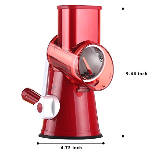 SLC Grasso grezzo rotante a tamburo grattugiato con taglierina di formaggio vegetale con 3 cilindri in acciaio inossidabile (Rosso)