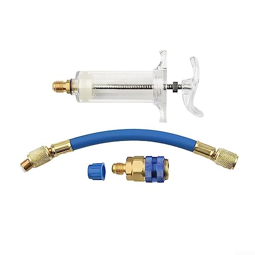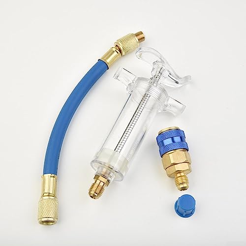 iniettore colorante R134A 1 oz mano girare pompa iniezione olio auto adattatore A/C.