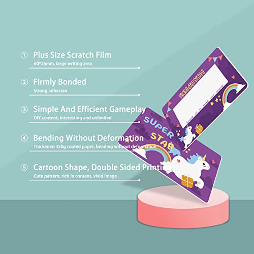 Divertente e creativo: questo gratta e vinci presenta un design a cartoni animati, stampa fronte-retro, colorato, molto carino e vivace. Ha angoli arrotondati che non danneggeranno le mani e proteggeranno i bambini da graffi accidentali.
