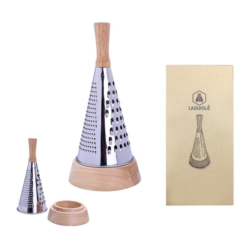 Splendida grattugia in legno ed acciaio con contenitore/supporto. Un prodotto di uso quotidiano che si distingue anche per la sua eleganza ed il suo stile. Qualit garantita Laguiole!