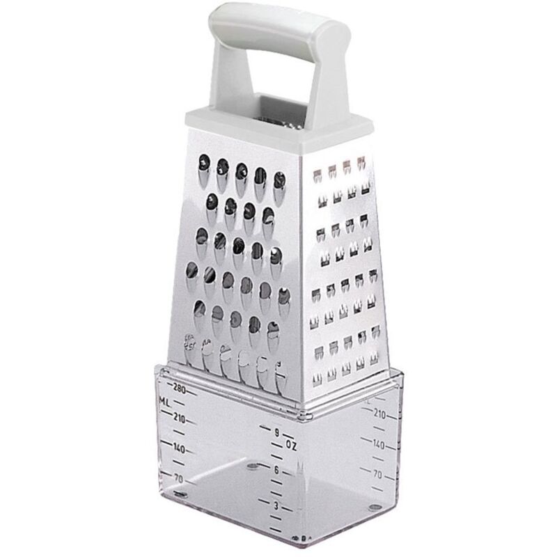 Grattugia con contenitore Handy Descrizione: Ideale per grattugiare facilmente e velocemente, affettare e misurare gli alimenti;