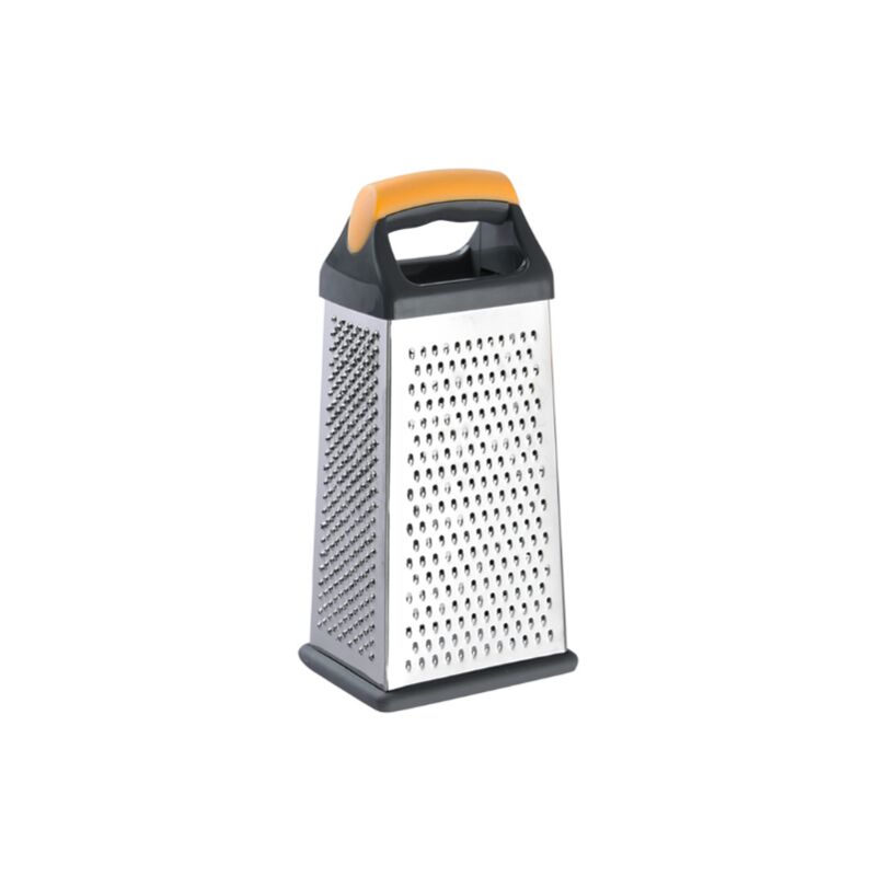 MULTIFUNZIONE: questa grattugia da cucina ha quattro diverse superfici per grattugiare senza occupare spazio nei cassetti UTILIZZO: le lame grossolane e fini sono perfette per l'uso come grattugia per formaggi o per verdure, e il super la lama per grattugiare fine è l'ideale per la noce moscata o lo zenzero. Usa la superficie per affettare le tue verdure e non solo IL PIÙ: il suo contenitore graduato che ti permette di contenere, misurare e conservare gli ingredienti grattugiati. Preparare le carote grattugiate non è mai stato così facile ERGONOMIA: il suo morbido manico in neoprene offre un'impugnatura ergonomica antiscivolo e antifatica e l'anello antiscivolo mantiene stabile la grattugia durante l'uso MANUTENZIONE: questo utensile da cucina in acciaio inox è lavabile in lavastoviglie per una pulizia accurata