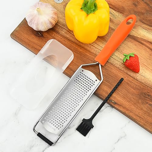 Grattugia Formaggio Manuale,Grattugia Limoni Lunga e Stretta,Grattugia in Acciaio Inox,Grattugia per Formaggio e Limone,con Impugnatura in Gomma Morbida,Spazzola + Strofinaccio in Cotone,long