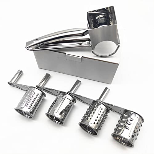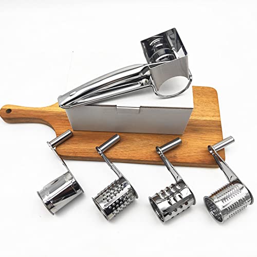 Grattugia per formaggio rotante in acciaio inox Grattugia per formaggi per verdure Sminuzzatore per verdure con 4 lame per tamburo