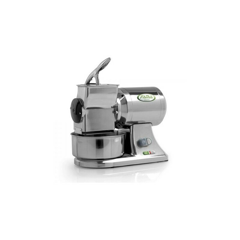 Codice RS1247 - Grattugia modello FM-GSM motore maggiorato (FGSM107), 230 volt, 1.1 kw, Hp 1.5, dimensioni cm. 42x27x37h, bocca dim. cm. 14x8, produzione oraria 70 kg formaggio. La grattugia professionale GSM si differenzia per potenza e prestazioni. Il motore da HP 1,5 a 900 giri è ideale per grattugiare grandi quantitativi di formaggio duro, pane, frutta secca, biscotti. Grata di protezione in acciaio allo scarico e interblocco al carico del formaggio per evitare il contatto con gli organi in movimento. Motore ventilato con termica di serie. Interruttore protetto da membrana in lattice di gomma. In regola con le normative vigenti. Optional disponibili: versione a 400 volt, rullo in acciaio inox.