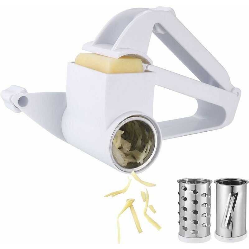 Nuovo design: la grattugia per formaggio è progettata con un supporto fisso e un manico antiscivolo, che consente di arrostire il cibo e tritarlo facilmente e rapidamente senza troppi sforzi. E il tamburo è abbastanza flessibile da consentire ai pezzi grattugiati di cadere automaticamente dalla grattugia senza intasarsi. Materiale sicuro e durevole] -Le lame del tamburo sono realizzate in acciaio inossidabile, mentre il guscio è realizzato in plastica ABS selezionata, che è antiruggine e privo di BPA per garantire un utilizzo sicuro. 3 diverse lame del tamburo - La confezione include 1 spazzola per la pulizia e 1 grattugia per formaggio con 3 lame del tamburo a motivi diversi (mulino/trita/taglia), così puoi ottenere diversi spessori e forme di brandello. Tutte le lame del tamburo sono rimovibili e lavabili in lavastoviglie. Grattugia per formaggio versatile: ideale per sminuzzare parmigiano, formaggio a pasta dura, cioccolato, verdure, frutta e d&bs. #39;