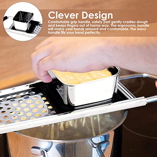 【Materiale di alta qualità】La struttura in metallo in acciaio inossidabile consente di utilizzare la forza necessaria per far passare l'impasto attraverso i fori, mentre le belle labbra su entrambe le estremità lo tengono in posizione sopra una pentola bollente.
