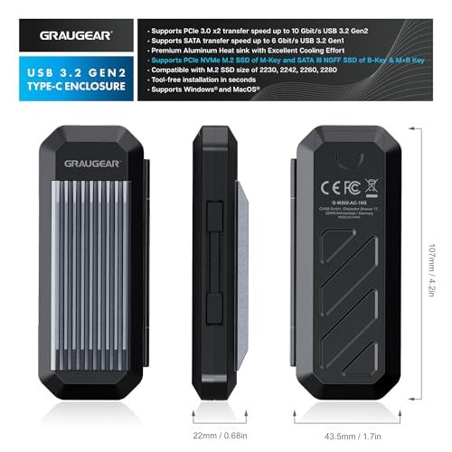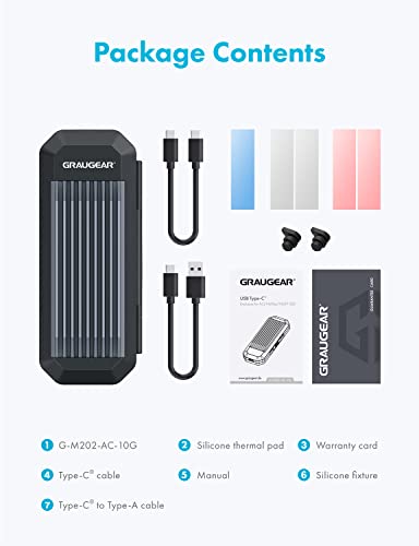 GRAUGEAR | Custodia esterna | per M.2 NVMe e NGFF SSD | USB 3.2 Gen2 (10 Gbit/s) | Sistema di raffreddamento | USB-C | USB-A | M-Key | B-Key | B+M-Key | G-M202-AC-10G