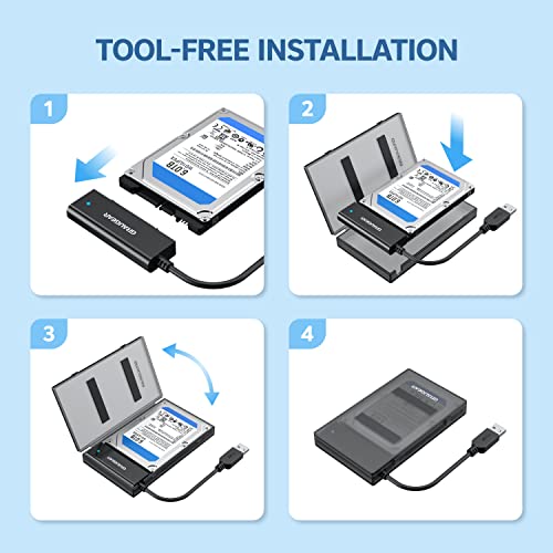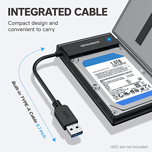 GRAUGEAR G-2603-AC - Adattatore USB per SATA SSD/HDD da 2,5", con adattatore USB-C, con scatola protettiva per dischi rigidi e adattatori, USB 3.0, UASP, installazione senza attrezzi