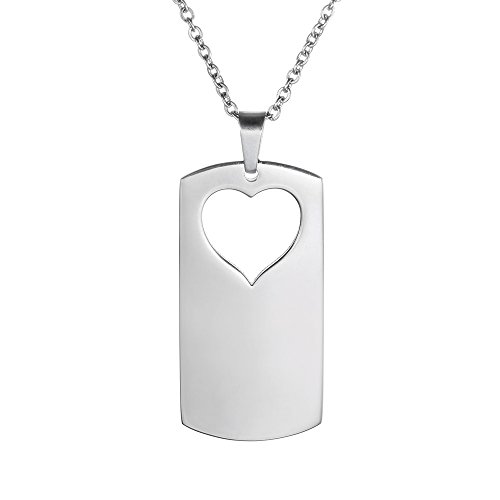 Questo elegante set di gioielli è composto da 2 pezzi: una collana con charm a forma di cuore (per lei) e una con pendente a forma di piastrina di riconoscimento (per lui).