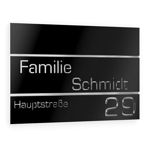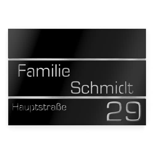 Graviers Design Numero civico personalizzabile in vetro acrilico + acciaio inox V2A 160 x 110 mm Nero, Resistente alle intemperie, Antiruggine, Targa per porta d'ingresso, Made in Germany