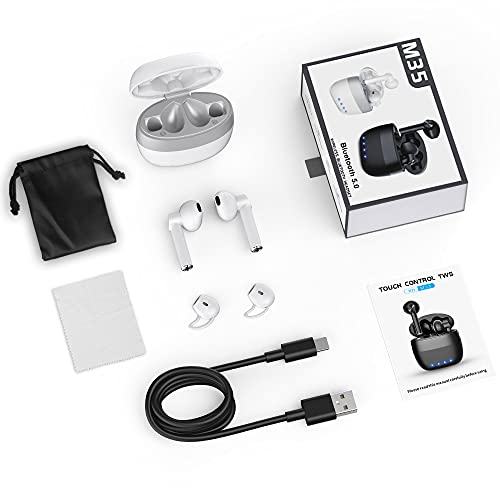 Grawille Cuffie Bluetooth, Auricolari Bluetooth 5.1 In Ear con Microfono, Sport Cuffie Wireless con Stereo HiFi, Touch Control, IPX5 Impermeabili Cuffiette Bluetooth con Ricarica Rpida USB-C (Bianco)