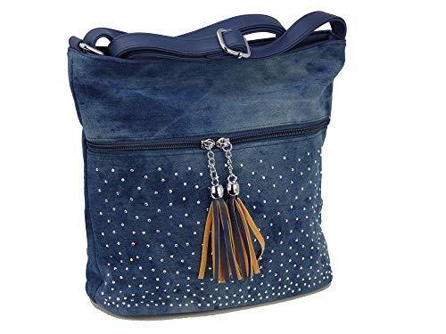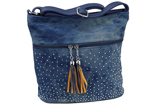 Graziosa borsa a tracolla in stile jeans con 2 trodi e piccoli borchi/borchie - effetto glitter - dimensioni senza manico 29 x 25 x 12 cm - Borsa da donna e ragazza - stile usato.
