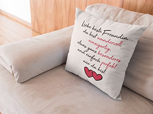 Graziosa federa per cuscino con scritta tedesca "Liebe beste Freundin...”, cuscino, cuscino decorativo, bianco, 40 cm x 40 cm, amicizia, tesoro, relazioni, sorella