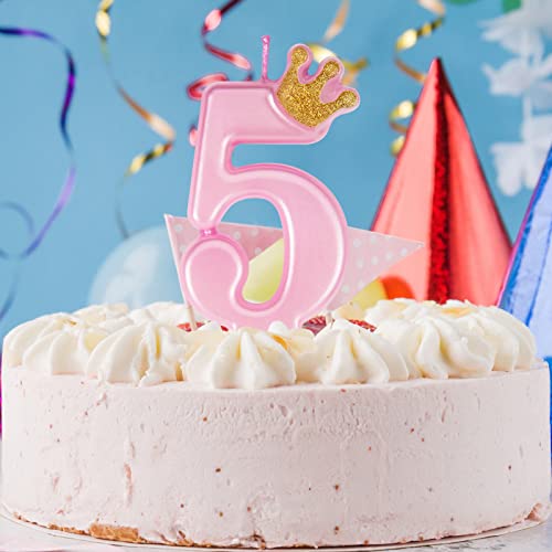 Graziose candele di compleanno rosa con corona, candele di compleanno uniche numeri 5 per donna ragazza