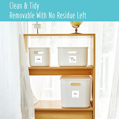 DIMENSIONE PERFETTA: Eleganti etichette bianche quadrate stampate con grandi caratteri corsivi neri, ciascuna misura 6,4 x 6,4 cm per una facile identificazione, etichette affascinanti e pratiche per l'organizzazione della conservazione della casa.