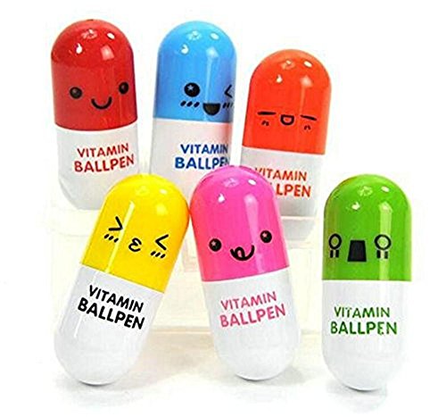 Graziose penne a sfera con volti sorridenti, penne telescopiche a forma di pillola di vitamine, cancelleria per ufficio e scuola, 6 pezzi