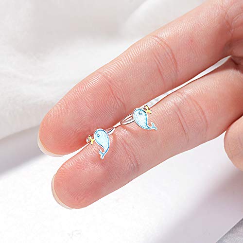 Graziosi orecchini a clip con delfini di balena blu, per donne e ragazze, in argento Sterling 925