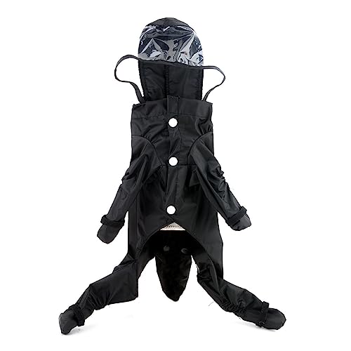 SMALLLEE_LUCKY_STORE Grazioso impermeabile per cani di piccola taglia con cappuccio e stivali staccabile coda cucciolo piumino giacca antipioggia piena Boby 4 gambe tuta impermeabile leggero vestito,