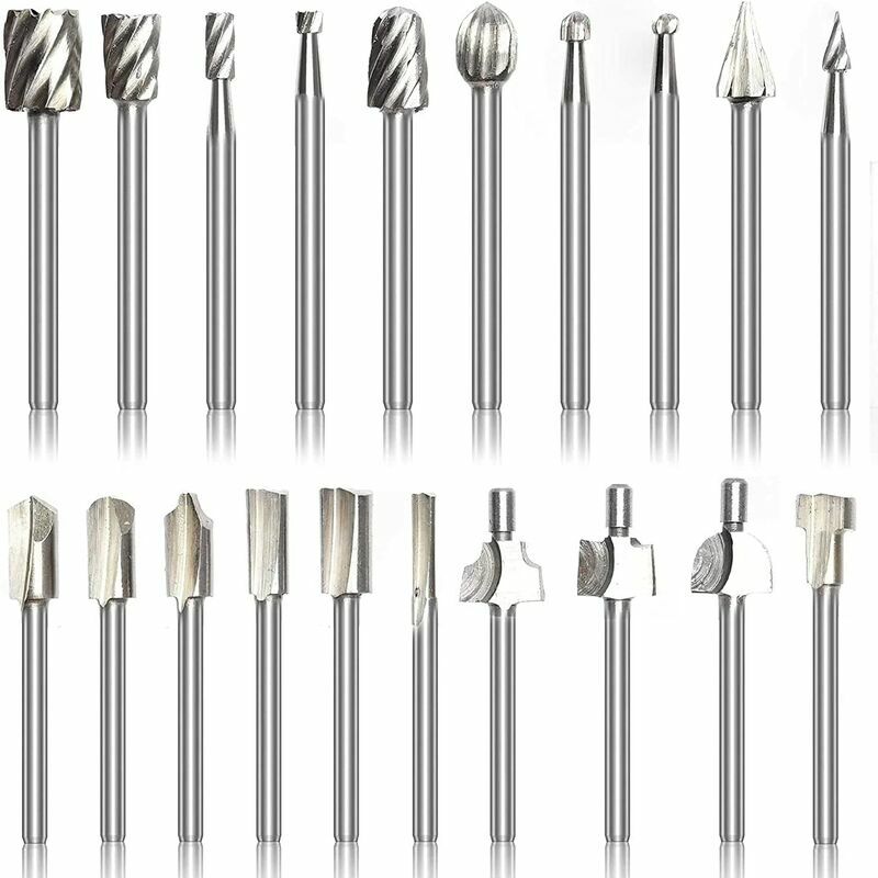 20 frese HSS, codolo da 1/8 di pollice (3 mm), lunghezza: 1,53 pollici (39 mm). Fai in modo che queste lime rotanti in carburo HSS funzionino con la maggior parte degli utensili rotanti o smerigliatrici, design intuitivo e facile processo di inserimento per una maggiore durata, un'ottima aggiunta alla lima. acciaio rapido e rivestimento in titanio per garantire durata e un'esperienza di taglio precisa;