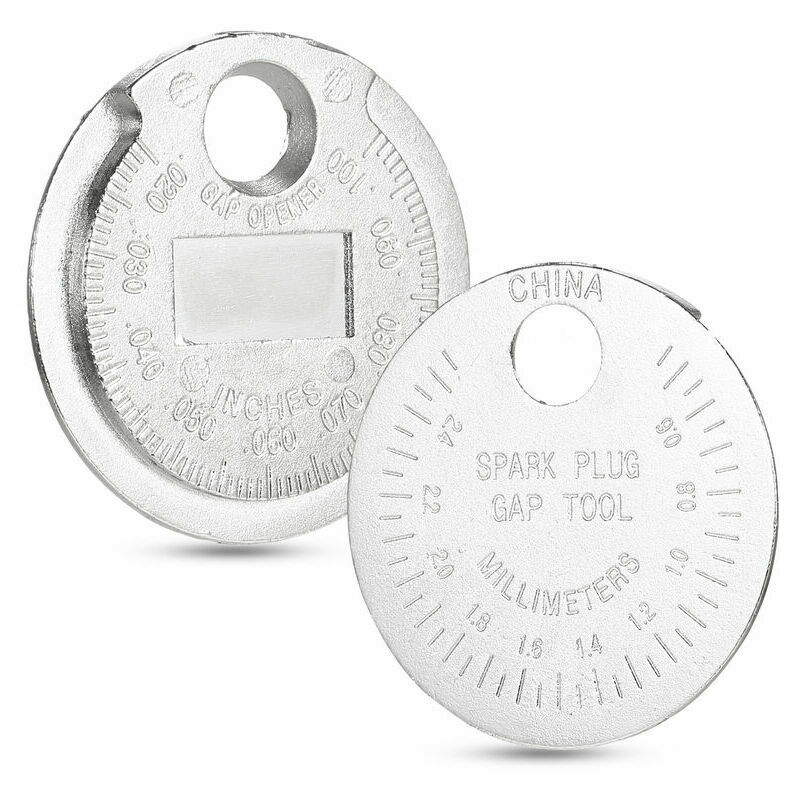 Caratteristiche: Soddisfa le tue esigenze a lungo termine: Riceverai 1 strumento per la distanza tra le candele per soddisfare le tue esigenze a lungo termine. < strong>Facile da leggere:< /strong> Indicatore della distanza tra gli elettrodi di accensione scalato da 0,020" a 0.100" (0,6-2,4 mm). Misurazione accurata: misura e regola con precisione la distanza tra le candele. Esecuzione squisita: lo strumento di divisione a forma di moneta è altamente lucidato per garantire che la bilancia non si consumi. Foro per portachiavi: è progettato con un piccolo foro, puoi attaccarlo al tuo portachiavi per un facile trasporto. Specifiche: Colore: argento Materiale: lega di zinco Dimensioni del prodotto: diametro di circa 1,5 pollici/ 3,8 cm Lista di imballaggio: 1 * Indicatore distanza candela
