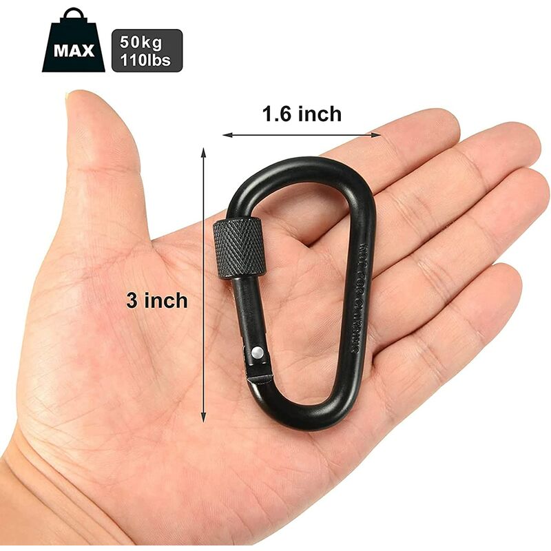 Caratteristiche: moschettone robusto, leggero, durevole, senza gancio, moschettone in alluminio con chiusura a vite, ma non adatto per l'arrampicata) Moschettone multifunzionale: perfetto per il campeggio, l'escursionismo, l'escursionismo, il trekking, il ciclismo, la pesca, cacciare e viaggiare ecc. Oppure usalo semplicemente come moschettone per un portachiavi o come guinzaglio e imbracatura per il tuo adorabile cane o gatto. NOTA: Questi moschettoni non sono adatti per l'arrampicata. Lista di imballaggio: Confezione da 5 moschettoni con chiusura< /p>