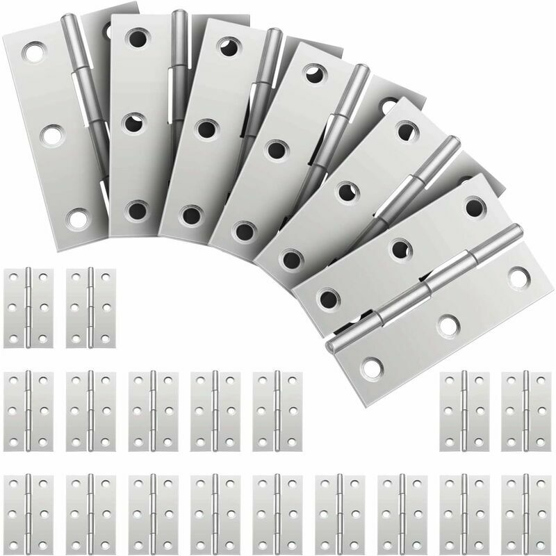 Descrizione del prodotto Argento. Materiale: acciaio inossidabile. Dimensioni: 44*32*0.8mm Peso: 10g/pz La confezione include 24*cerniere br/> 1.Design con 6 fori di montaggio: cerniera in acciaio inossidabile da 24 pezzi, cerniere in acciaio inossidabile con foro di posizionamento scientifico e asse stabile, che può bilanciare il peso e ridurre il rumore, funzionare senza intoppi< br/>2. Realizzato in acciaio inossidabile di alta qualità: la cerniera è realizzata in acciaio inossidabile di alta qualità, il materiale è resistente e durevole. Le cerniere in acciaio inossidabile sono resistenti all'umidità e all'acqua. Precisione, alta resistenza, non facile da arrugginire. 3. Ampia applicazione: questa cerniera funge da giunto per connessioni flessibili in legno. Puoi usarlo per portagioie, scatola portaoggetti, porta dell'armadio, cancelli, porte, casette per uccelli, cassapanche o scatole di legno. Adatto per uso interno ed esterno. 4. Protezione dalla corrosione e non facile da