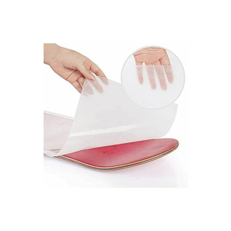 PEEL AND STICK - Stacca e incolla facilmente questo foglio di presa 10,2 x 50 per il tuo skateboard. Il nastro è anche facile da tagliare per applicazioni personalizzate. Nastro antiscivolo trasparente per skateboard Senza bolle: il nastro presenta centinaia di perforazioni appena visibili che consentono all'aria di fuoriuscire per un'applicazione senza bolle. Elevata resistenza che supera la prova del tempo: spessore fino a 1,5 mm. Processo di incollaggio proprietario in carburo di silicio per una presa che non si consuma. Nastro adesivo professionale: la migliore presa e presa per i ciclisti di scooter e skateboard di tutti i livelli. Migliora la presa del guidatore, che porta a trucchi migliori e maggiore sicurezza. Funzioni 1.La sabbia ad alta densità della lunga carta vetrata trasparente offre una trasparenza meravigliosa ed è robusta senza bolle.2.Il retro della carta vetrata è lo sfondo bianco. E diventerà semitrasparente quando strappi la carta vetrata 3. Puoi