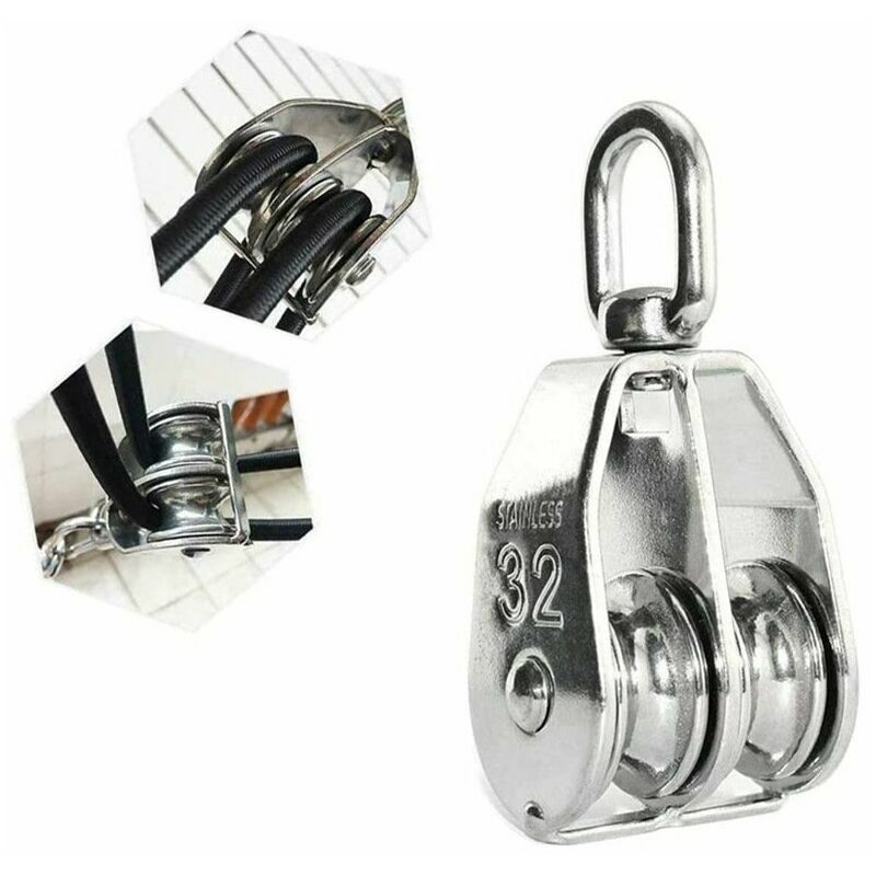 Materiale: doppi rulli M32 in acciaio inossidabile 304, superficie lucida, carico massimo M32: 250 kg. Anello girevole a 360 gradi: facile da usare, può essere utilizzato con cavo o cavo interno o esterno, scorrimento flessibile puleggia. Vantaggi: impermeabile, antiruggine, anticorrosivo, può essere utilizzato in ambienti umidi, processo rigoroso, affidabile e durevole. Versatile: i paranchi sono paranchi con un alto capacità di carico. Puoi eseguire lavori di sollevamento, sorpasso o traino. Adatto a grandi kayak, canoe, fabbriche, case. Ideale per garage, negozi. Macchine, tende, stendibiancheria, treni per cani e altro ancora. Contenuto della confezione: 1 blocco a doppio rullo in acciaio inossidabile M32 Descrizione del prodotto Progettato per appendere oggetti pesanti per alleggerire i carichi. Corde per uso interno ed esterno. Top con anelli girevoli. Durevole, solido, affidabile, impermeabile, antiruggine, alto resistente alla temperatura, resistente alla corrosione.
