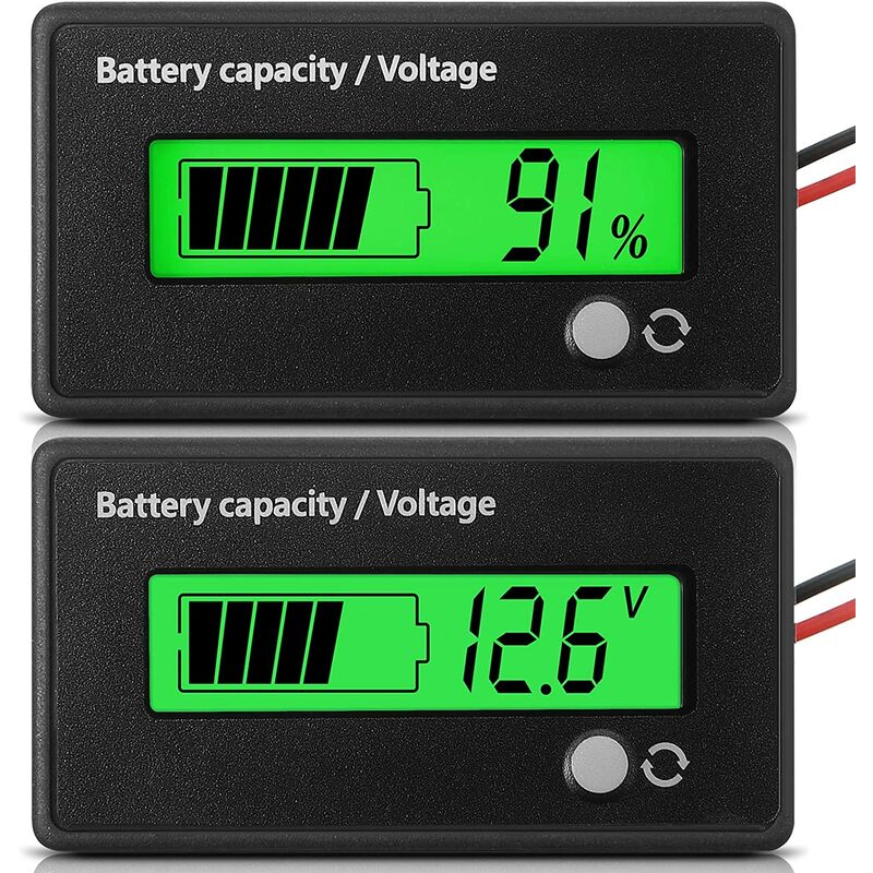 Pratico da usare: il tester di tensione della batteria è dotato di un pulsante a funzione commutata. Puoi premere per controllare la capacità dell'allevamento o la tensione in tempo reale e, con il design dell'allarme, il display del misuratore della batteria lampeggerà quando la capacità della batteria è inferiore al 20% Facile da leggere: il display della batteria è progettato con un LCD chiaro Dotato di display digitale e ha una protezione dello schermo in PVC impermeabile con retroilluminazione brillante, che consente di leggere i risultati da diverse angolazioni, con un basso consumo energetico di lavoro e massimo 5 mA Per batterie diverse: la batteria l'indicatore di capacità è compatibile con batterie al piombo da 12 V/ 24 V/ 36 V/ 48 V/ 60 V/ 72 V/ 84 V, batteria al litio ternaria, batteria agli ioni di litio polimerica, batteria agli ioni di litio serie 3-15, accumulatore e batteria ad acqua e altro ancora;