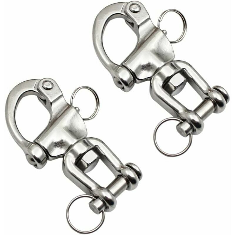 La confezione include 2 grilli, adatti per spinnaker. La lunghezza totale è di circa 70 mm. Realizzato in acciaio inossidabile di alta qualità, resistente, non facile da danneggiare. Superficie e bordi lisci, resistenti alla corrosione. La forcella anteriore può essere ruotata di 360 gradi. Ampiamente utilizzata per interni ed esterni: casa, giardino, barca, campeggio o viaggi, ecc.