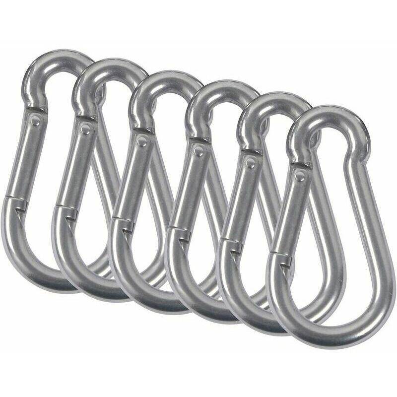 Materiali: Il nostro moschettone è realizzato in acciaio inossidabile 304. Pertanto, è elegante, resistente, leggero e pratico, non preoccuparti che il moschettone sia troppo pesante, è un ottimo strumento per gli escursionisti., campeggiatori, fotografi o chiunque porti una borsa. Il moschettone può essere posizionato direttamente nello zaino o nella valigetta Dimensioni: Moschettone M5, lunghezza: 1,96'/50 mm, spessore: 0,18'/4,57 mm, diametro apertura moschettone: 0,52 "/13,2 mm, peso moschettone 6 pezzi: 95,5 g Caratteristica: Questo moschettone a molla in acciaio inossidabile è dotato di un cancello a molla che consente loro di essere fissati in modo rapido e sicuro a una vasta gamma di punti di attacco. Funziona senza intoppi rispetto al cancello a molla, è facile attaccare oggetti importanti a uno zaino o alla cintura, ecc. Utilizzo: Questi moschettoni caricati a molla sono ideali per molte applicazioni quotidiane. Sia come portachiavi o per attaccare oggetti a uno zaino, un