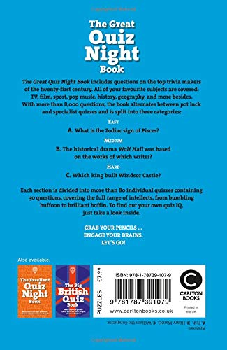The Great Quiz Night Book: More Than 8,000 Quiz Questions to Be Enjoyed at Home or in the Pub!: 10,000 quiz questions to be enjoyed at home or in the pub