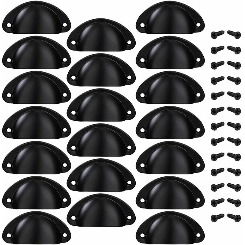 La confezione include: Contiene 20 pomelli per cassetti e 40 viti. Ogni maniglia misura 82 x 35 mm. Alta qualità: La maniglia del mobile è in ferro e la superficie è resistente e liscia. Solida, non facile da sbiadire, non facile da rompere, lunga durata. < p > Design unico: La maniglia ha la forma di una conchiglia, qualcosa di molto personale. Nero retrò per un look chic e per decorare i tuoi mobili. Facile da installare: L'alloggiamento del pulsante è facile da installare, controllare prima la distanza tra i fori della maniglia. Quindi praticare i fori corrispondenti nel pannello dell'armadio e infine fissare con le viti fornite. Applicazioni: Le maniglie dell'armadio sono adatte a una varietà di stili decorativi. Può essere utilizzato per armadi, cassettiere, cassetti della scrivania e altri mobili.