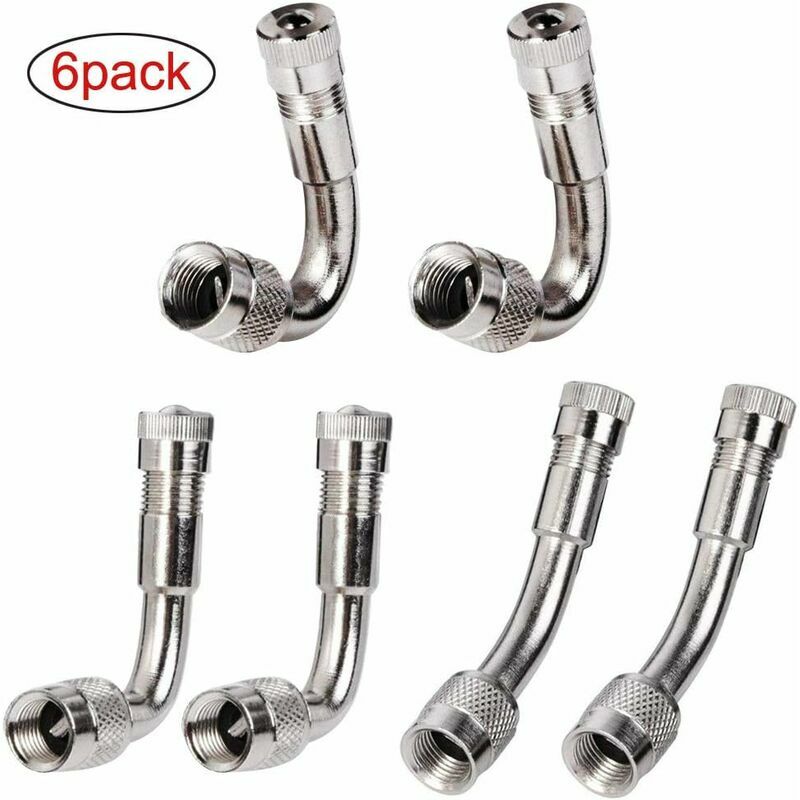 Adattatore universale RUNCCI 6PCS per estensione stelo valvola pneumatici, risolve con successo il problema che non è possibile utilizzare la pompa da pavimento per controllare la pressione dei pneumatici o gonfiare il pneumatico a causa della mancanza di spazio tra la valvola e i raggi della ruota . ★ Dimensioni: 45 gradi Lunghezza: ca. 3,5 cm / 1,4 pollici Lunghezza a 90 gradi: ca. 4 cm / 1,6 pollici Lunghezza 135 gradi: ca. 5,5 cm / 2,2 pollici Materiale: rame nichelato Colore: argento Quantità: 6 pezzi ★ Caratteristiche: Realizzato in ottone (superficie cromata) e viene fornito con una copertura antipolvere in metallo, resistente e durevole. La parte inferiore dell'estensione ruota liberamente per una facile installazione. L'adattatore si avvita sulla valvola del tuo pneumatico e ti consente di controllare e gonfiare facilmente i tuoi pneumatici gemellati. Maggiore durata della vite della valvola del pneumatico originale. Questa estensione universale si adatta a tutte le