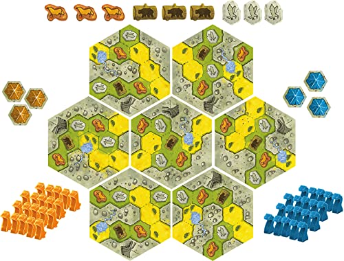 7 vassoi fronte/retro, 6 tegole caverne, 9 tegole animali, 40 fiches Tribu