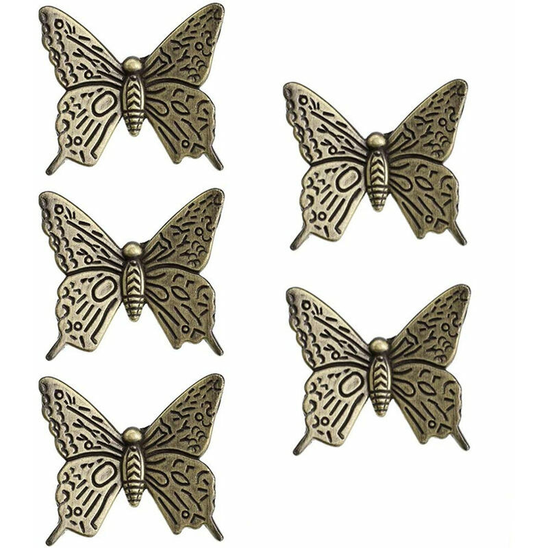 Specifiche del prodotto: Set di 5 maniglie a farfalla per cassetti, viti incluse. Ogni maniglia misura 43 mm di lunghezza e 40 mm di altezza. < strong>Materiali durevoli: Queste maniglie delle porte sono realizzate in lega di zinco di alta qualità. Trattamento galvanico multiplo, resistenza alla corrosione, non facile da sbiadire. Ampiamente usato: Il suo aspetto bronzo-chic aggiunge un tocco di colore ai mobili. Adatto per armadi, cassetti, cassettiere e altri mobili.
