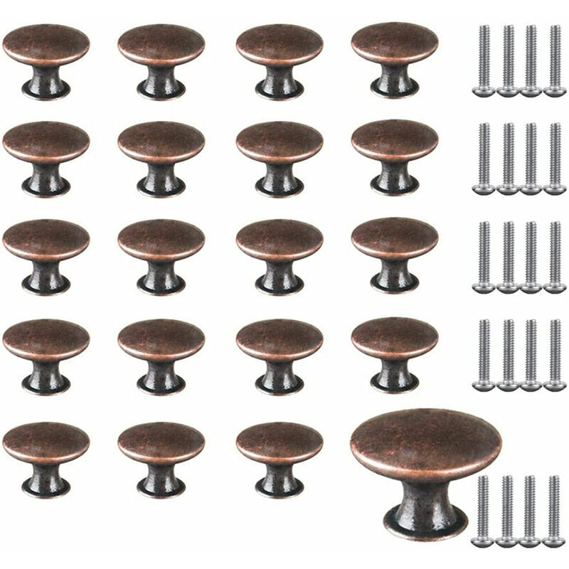 Diametro: 30 mm Altezza: 21 mm Consegna: 20 × Pomelli, 20 × Viti Pomolo per mobili retrò in lega di zinco, squisito e pratico. Adatto a tutti gli stili di armadi, cassetti, cassettiere e altro ancora. Finitura in bronzo rosso antico, forma a fungo facile da impugnare. Viene fornito con viti per una facile installazione.