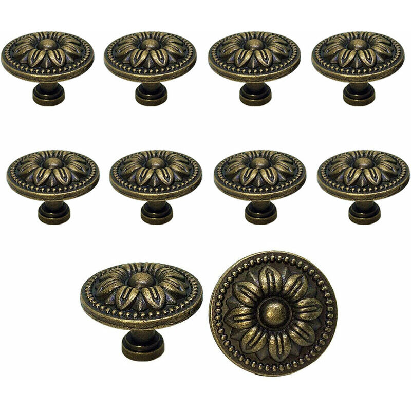 Materiale: lega di zinco Diametro: 35 mm Altezza: 26 mm Fornisce 10 pomelli per cassetti con viti. Si adatta alla maggior parte dei pannelli delle ante fino a 0,9 pollici/22 mm di spessore. La maniglia rotonda dell'anta dell'armadio con un bellissimo motivo floreale è delicata e pratica. Decora perfettamente qualsiasi armadio, comò, scrivania, scarpiera, cassetto e altro ancora.