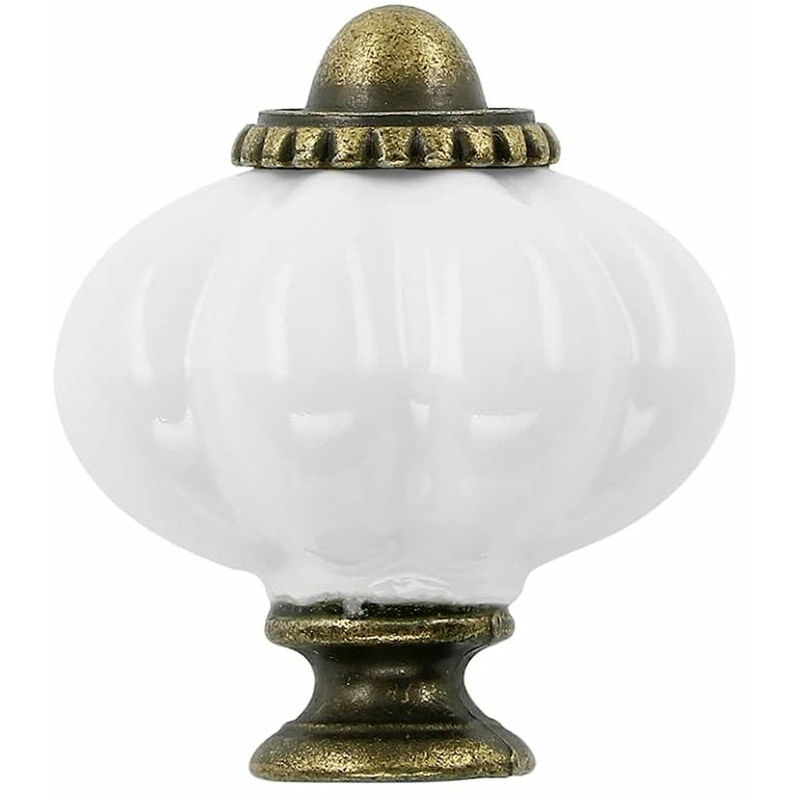 Colore: bianco Diametro: 30 mm Altezza: 36 mm Questa maniglia singola per cassetto è realizzata in materiale acrilico. La sua superficie è liscia, senza spigoli vivido, sicuro e facile da pulire.Il design a forma di zucca è bello e facile da usare.L'aspetto bianco e la decorazione in bronzo sono molto retrò.Installazione semplice, basta stringere le viti per completare. Adatto a famiglia, ufficio, ristoranti e in altri luoghi.