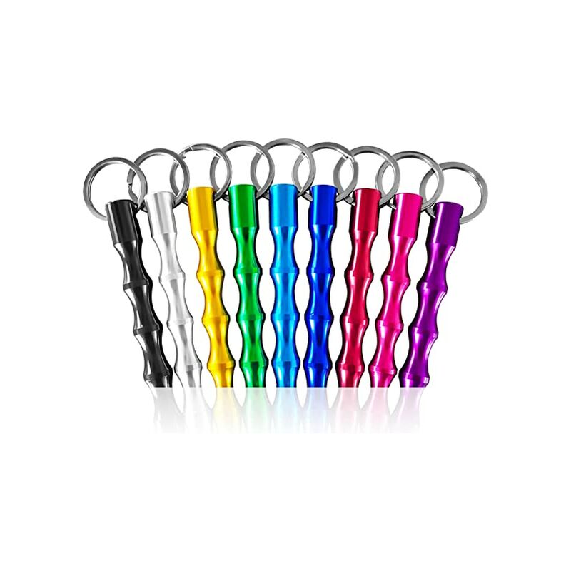 MATERIALI: Realizzato in alluminio aeronautico (solido) di alta qualità, il nostro portachiavi protettivo è caratterizzato da elevata durezza, robustezza ma leggero. PUNTA ROTONDA AFFILATA: Il design appuntito consente un'elevata concentrazione di potenza per garantire la tua sicurezza durante l'uso. PORTATILE: i portachiavi sono dotati di un anello che è facile da attaccare alla chiave o alla borsa da donna per la protezione personale, quasi delle stesse dimensioni di una penna a sfera (lunghezza 5,5 pollici), è facile da trasportare. CONFEZIONE: 9 pacchetti di portachiavi abbinati a 9 colori, scanalature per le dita per un migliore controllo;