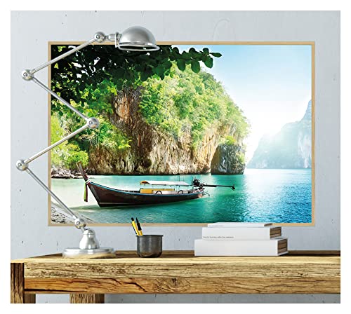 GREAT ART® Poster - Barca - Baia Natura Longtail Pescatore Vascello Tropicale Paradiso Vacanza Viaggio Isola Mare Spiaggia Decorazione da Parete Murale Din A2 (42 x 59,4 cm)