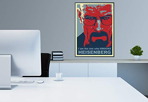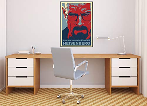 Dimensioni ✔ 85 x 60 cm - 1 pezzo: Rosso-Blu Breaking Bad poster murale dell'attore Bryan Cranston per il tuo interior design - con le parole "Io sono quello che bussa" di HEISENBERG.