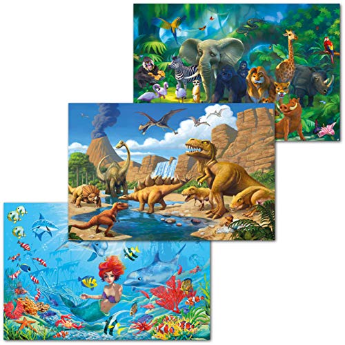 GREAT ART Set di 3 Poster XXL - Unique Cartoon Classics - Dinosauro Sirena Animali della Giungla Illustrazione Fumetto Arredamento Interno Murale cadauno 140 x 100 cm