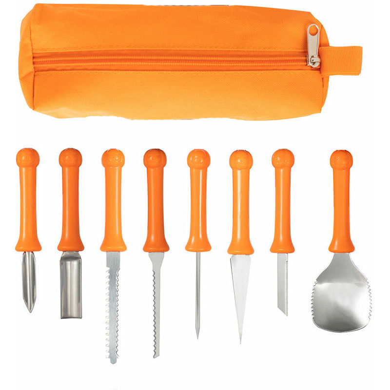 Kit per intagliare la zucca di Halloween: questo set per intagliare la zucca include 8 interessanti strumenti per intagliare la zucca: pala, sega, strumento per intagliare e trapano. Tutta la famiglia può intagliare allo stesso tempo. Durevole e sicuro: il kit per intagliare la zucca è realizzato in acciaio inossidabile di alta qualità con robuste maniglie antiscivolo. Può essere riutilizzato più e più volte. Per motivi di sicurezza, consigliamo ai bambini di usarlo sotto la supervisione di un adulto. Facilmente ed efficacemente: il nostro kit di taglio è perfetto per pulire semi e polpa di zucca, ideale per ritagliare dettagli, motivi e coperchi ecc., è ideale per tagliare forme e dimensioni, rendendolo un must per tutte le celebrazioni di Halloween. < li>Crea lanterne di zucca accattivanti: l'intaglio della zucca è una tradizione di creazione di disegni espressivi di personaggi di zucca utilizzando strumenti di intaglio per creare e scolpisci un'espressione carina, spaventosa o