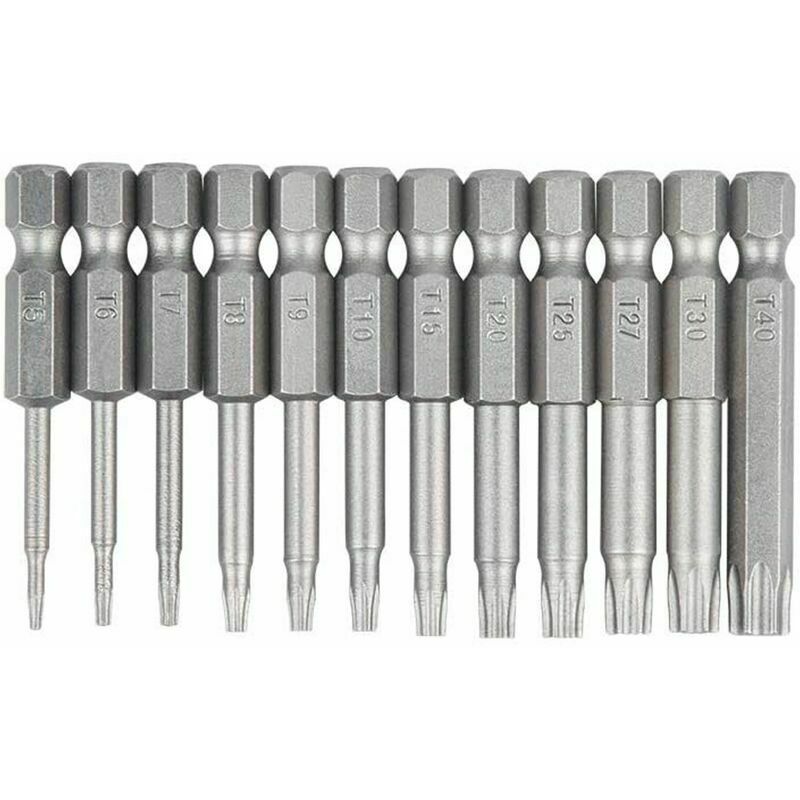 Varie misure: 12 pezzi: T5, T6, T7, T8, T9, T10, T15, T20, T25, T27, T30, T40. Lunghezza totale: 50 mm. Materiale eccellente: realizzato in acciaio S2 di alta qualità, robusto e durevole per un uso duraturo. Facile da usare: può aspirare facilmente le viti. La punta può essere utilizzata con un cacciavite elettrico e la maniglia può anche aiutare a girare la vite manualmente. Ampie possibilità di utilizzo: può essere utilizzata con un cacciavite elettrico, un cacciavite a mano, un trapano elettrico e altri strumenti generici. Nota: le punte per cacciavite Torx T5, T6, T7 non sono a prova di manomissione. Specifiche: Materiale: acciaio S2 di alta qualità. < p>Taglie: T5, T6, T7, T8, T9, T10, T15, T20, T25, T27, T30, T40. Tipo di asta: 6,35 mm, lunghezza totale: 50 mm. Contenuto: 12 punte per cacciavite Torx. Nota: T5, T6, T7 non sono a prova di manomissione. Diverse misure: 12 pezzi: T5, T6, T7, T8, T9, T10, T15, T20, T25, T27, T30, T40. Lunghezza totale: 50 mm. Materiale