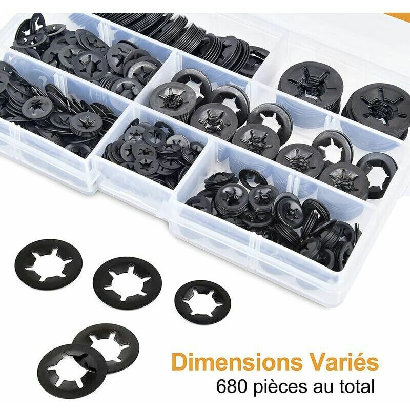 Varie dimensioni - Ci sono 7 taglie più popolari, M3/M4/M5/M6/M8/M10/M12, per soddisfare le vostre esigenze quotidiane. 【Materiale eccellente】 Acciaio metallico 65Mn, alta qualità, estremamente forte, resistente alla corrosione e durevole. 【Effetto di bloccaggio】 La rondella di sicurezza esercita una forza elastica tra la testa e la piastra di base per fissare la rondella dura alla filettatura della vite dura davanti alla piastra di base, aumentando l'attrito e la resistenza alla rotazione. 【Ampia applicazione】 Ampiamente utilizzato in apparecchiature meccaniche, apparecchiature elettroniche, elettrodomestici e altri campi, adatto per artigiani, professionisti, industria, artigianato e decorazione. 【Archiviazione classificata】 Ogni dimensione è separata in una scatola di immagazzinaggio per un facile accesso e archiviazione.