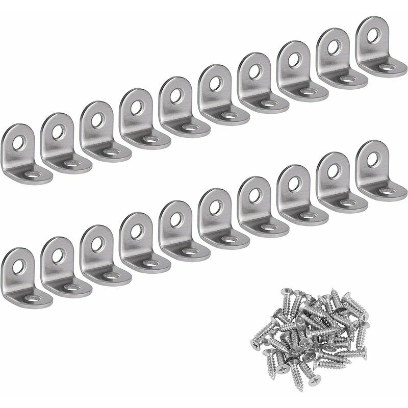 Rinforzo di una porta dell'armadio per scope, giunture di superfici piane, cuciture e crepe. Aiuta a rafforzare il telaio del letto, la scatola, costruisci o ripara i mobili installati. Alta qualità: la staffa è realizzata in acciaio inossidabile di alta qualità, robusto, resistente, resistente, impermeabile e antiruggine. Finitura in acciaio inossidabile lucidato a mano, aspetto moderno e nessuna preoccupazione per graffi quotidiani, corrosione e ossidazione. Grande quantità: set di 20 distanziali angolari + 40 viti, dimensioni 20x20x16 mm. Diametro del foro di montaggio: 5 mm / 0,2 Numero di fori: 2 fori, ideale per una vasta gamma di applicazioni. Facile da installare: i fori delle viti sono svasati in modo che le viti siano a filo con la superficie delle staffe Super conveniente per i comuni lavori fai-da-te in casa. Rinforzo angolare a L in acciaio per rinforzare le giunzioni angolari destre. Cosa