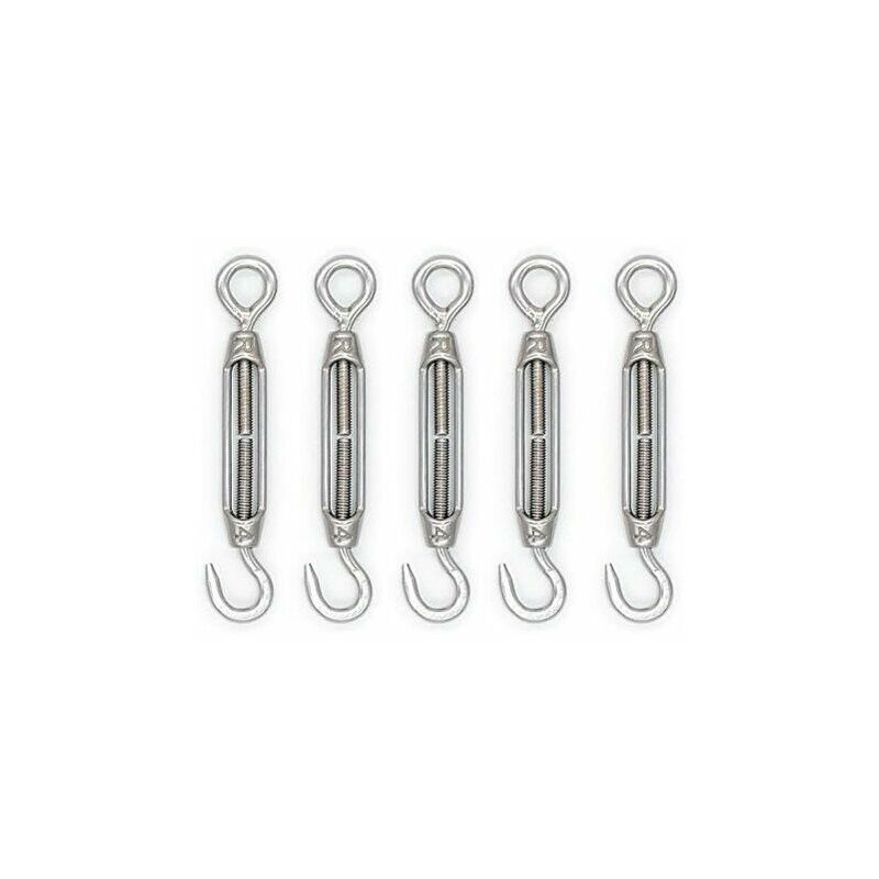 Adatto per tendere la corda e regolare l'effetto elastico. Adatto: perfetto per interni ed esterni Specifica: Peso: 210 g Materiale: acciaio inossidabile 304 Distanza di corsa libera: 43 mm Applicazione: adatto per stringere la corda e regolare l'effetto elastico Confezione: 5 ganci M4 Nota: il colore dell'articolo reale può variare leggermente a causa della fotografia e del computer
