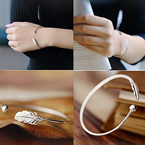 Greatangle Bracciale in Argento Sterling Bracciale con Piume Stile Donna Gioielli Moda Fresca Regalo Gioielli in Argento Sterling
